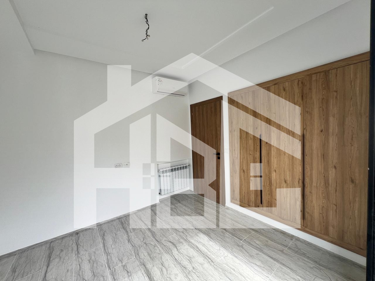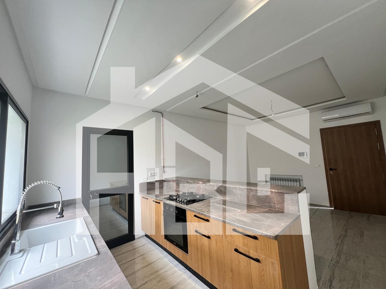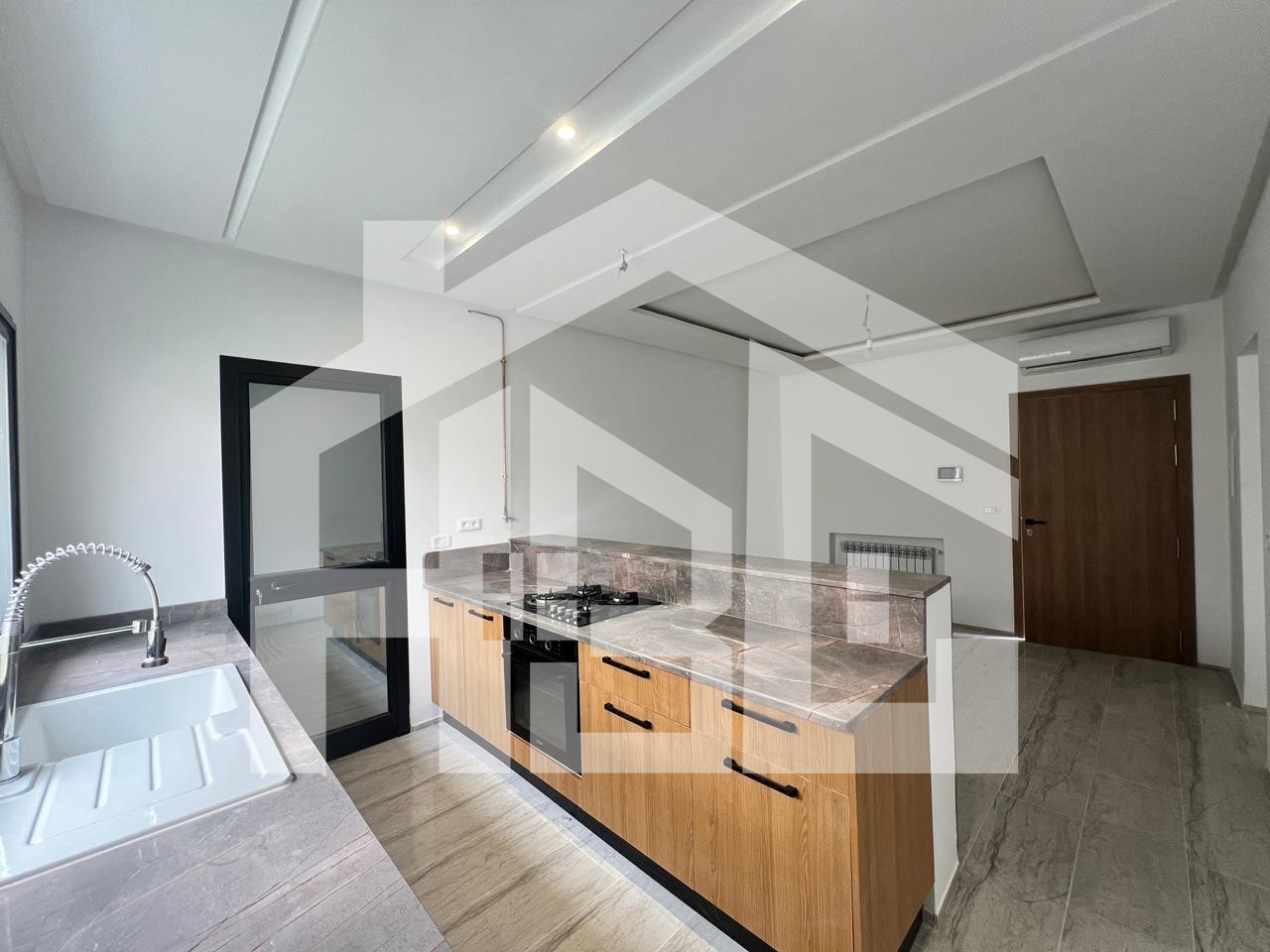 L’entrée donne sur un spacieux salon baigné de lumière naturelle et qui s’ouvre harmonieusement sur une élégante cuisine américaine entièrement équipée par un four électrique, une hotte aspirante et une plaque de cuisson annexée par un séchoir pour plus de fonctionnalité. La cuisine fonctionnelle et contemporaine dispose d’un plan de travail pratique idéal pour un usage quotidien comme pour recevoir.
