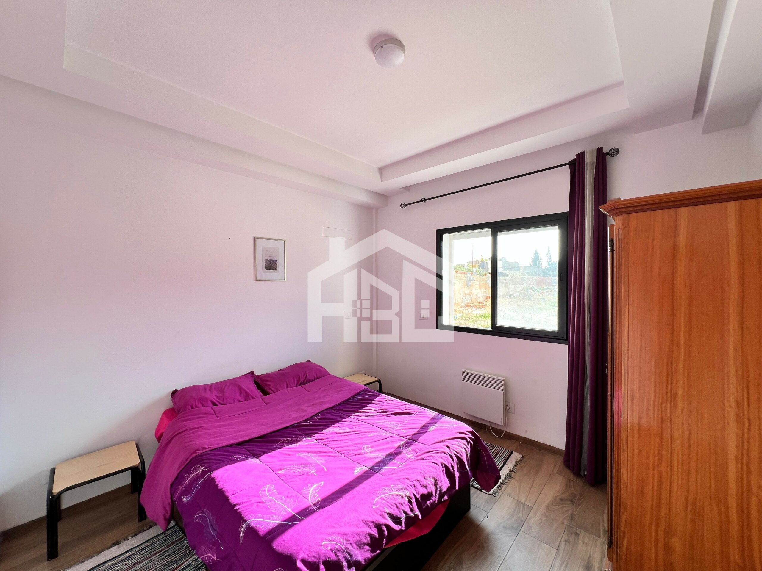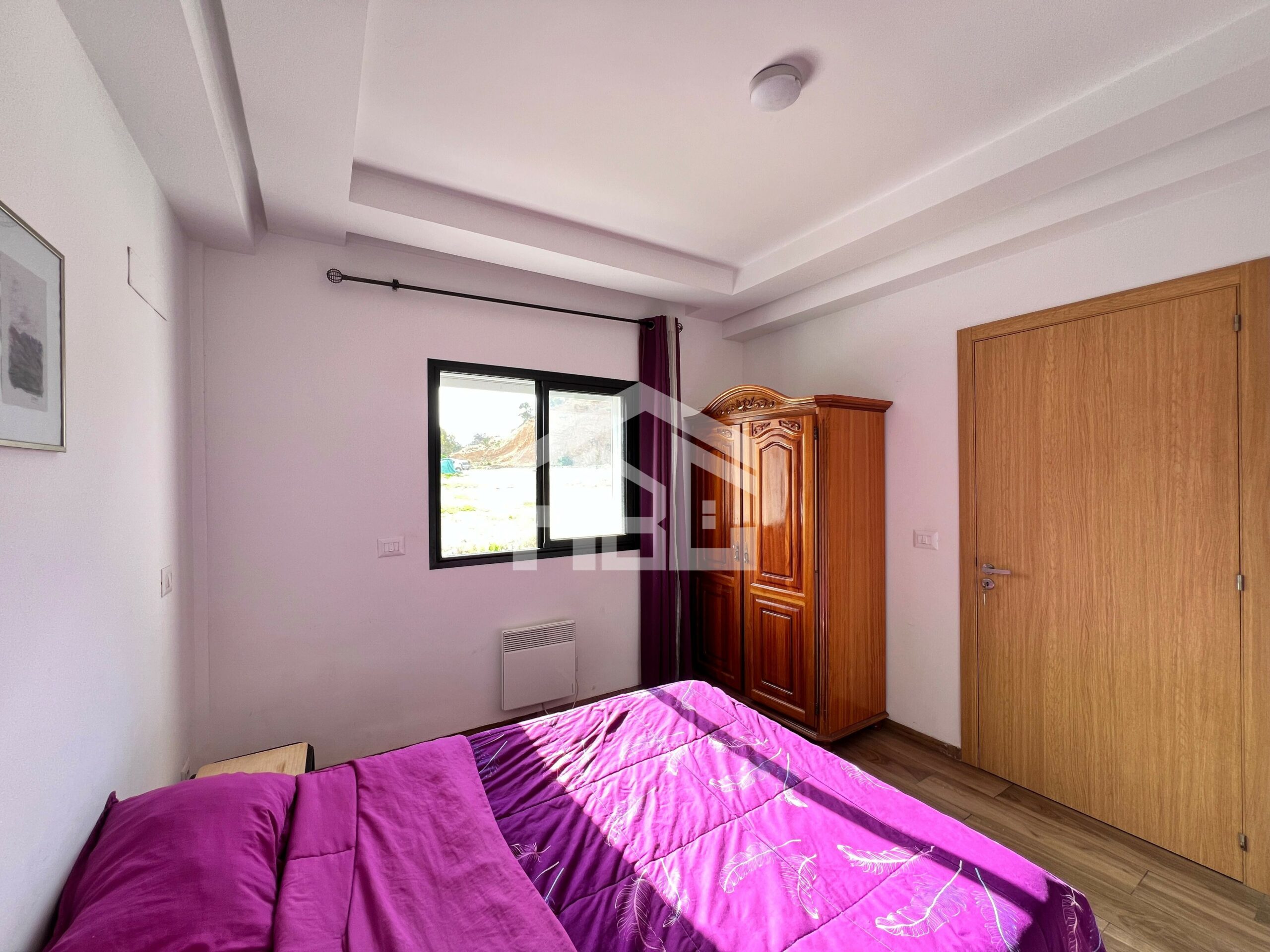 Une chambre à coucher est agencée par un dressing, un lit double avec deux tables de nuit, bénéficié d’une excellente luminosité naturelle, offrant une ambiance lumineuse et agréable.