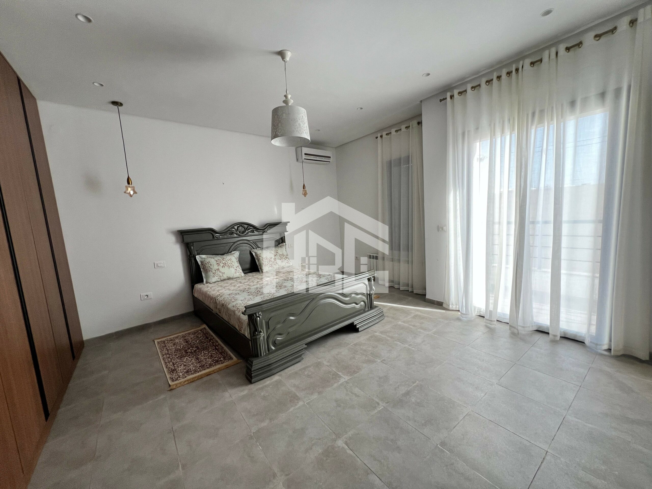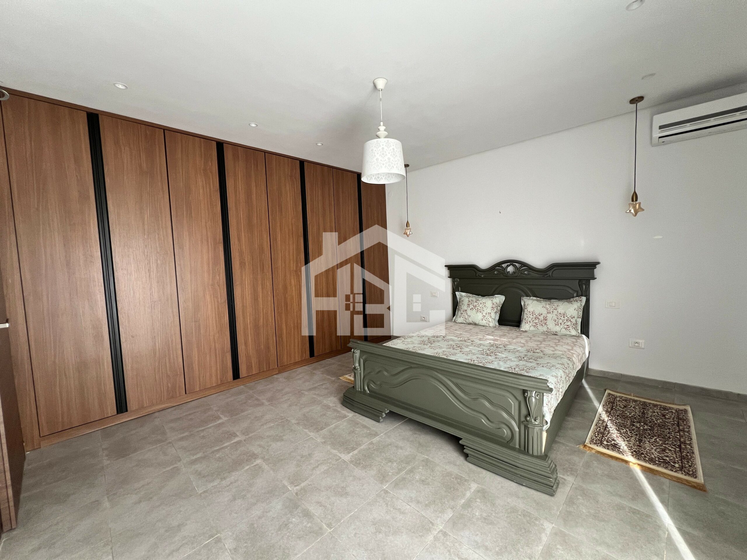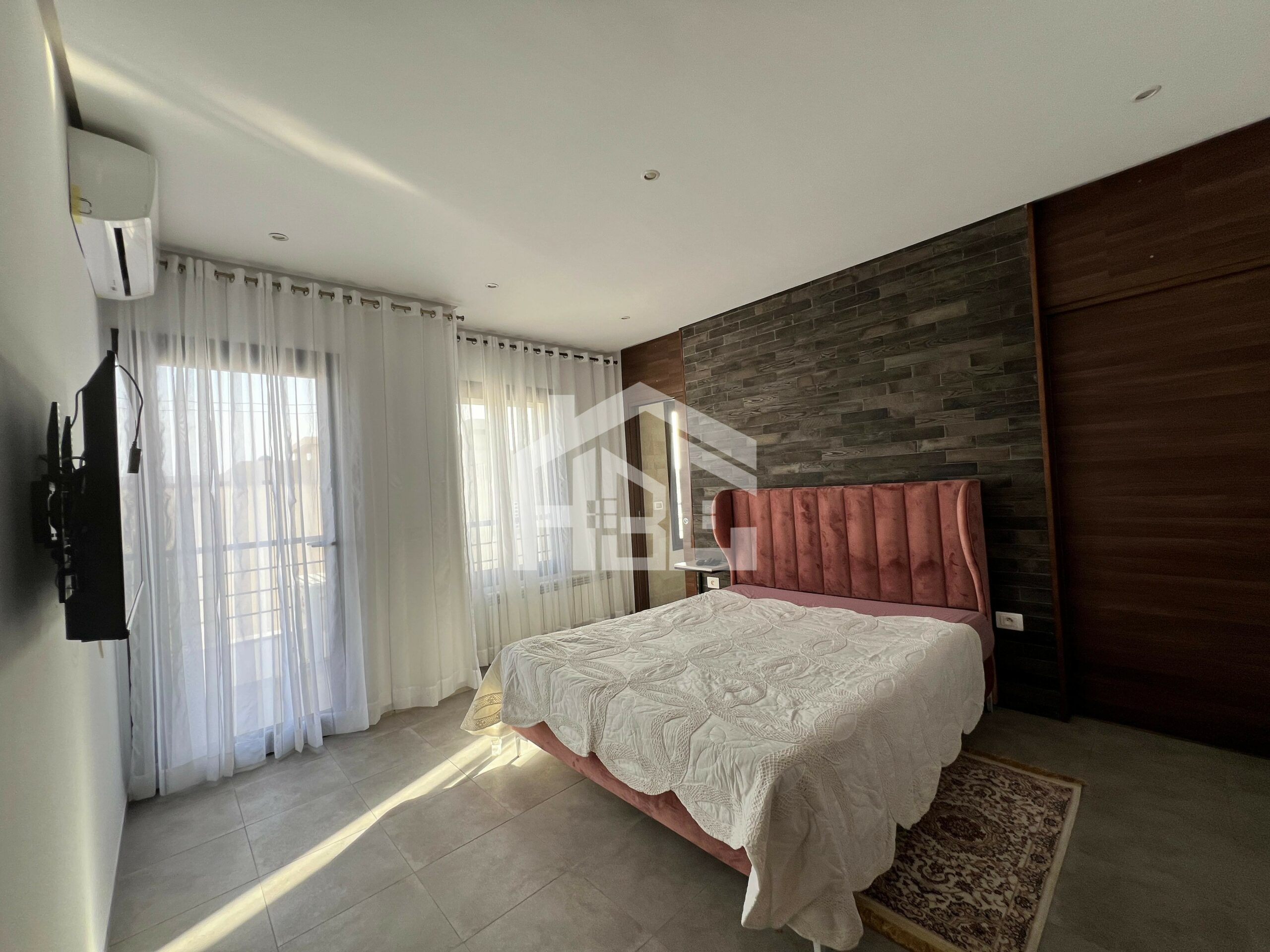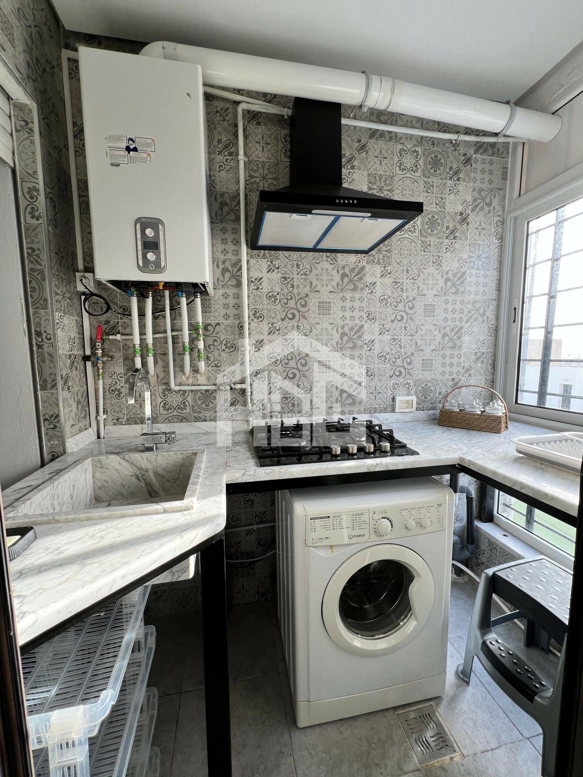 Dès l’entrée vous êtes accueilli sur un salon lumineux offrant une atmosphère chaleureuse. Grâce à sa conception open-space, il s’ouvre harmonieusement sur une cuisine américaine avec îlot central de très haut standing, totalement aménagée avec des matériaux nobles et design contemporain et équipée par un four électrique, une hotte aspirante une plaque de cuisson et un réfrigérateur annexée par un séchoir aménagé par une deuxième cuisine équipée par une plaque de cuisson, une hotte aspirante et une machine à laver pour plus de fonctionnalité.