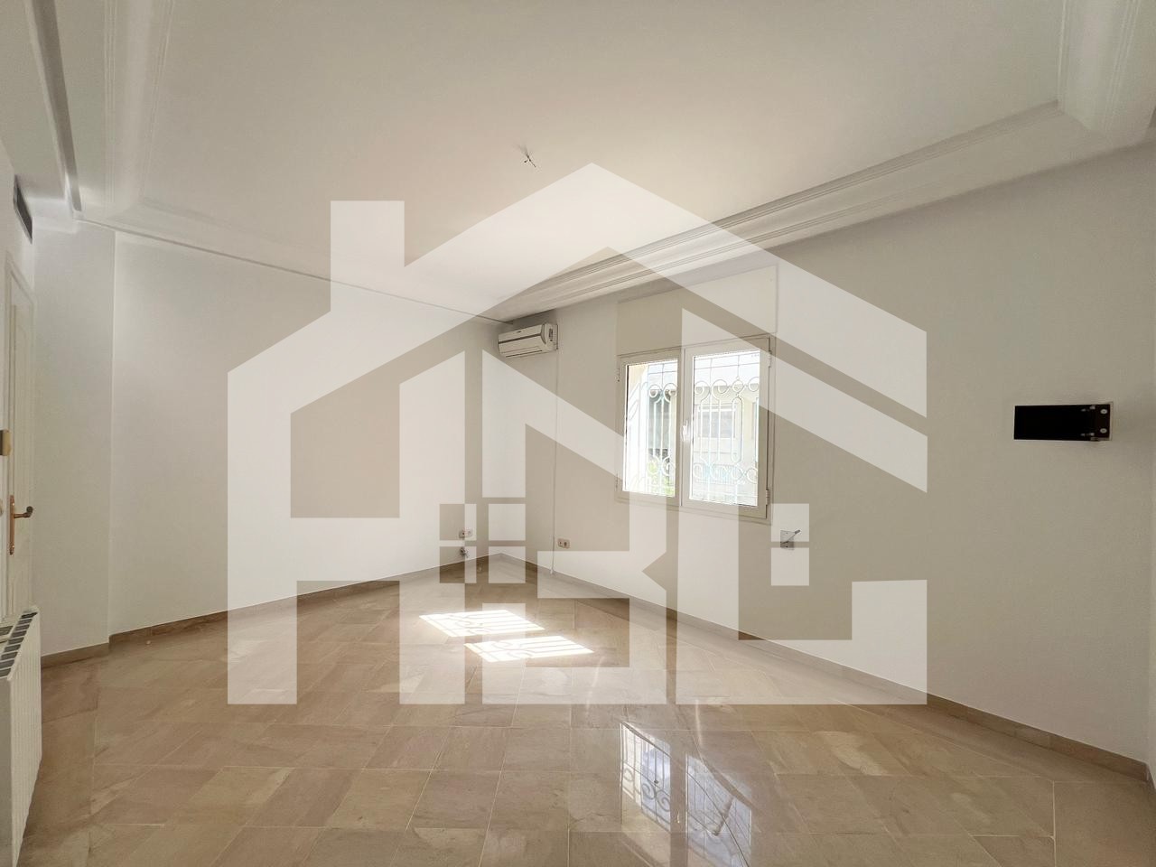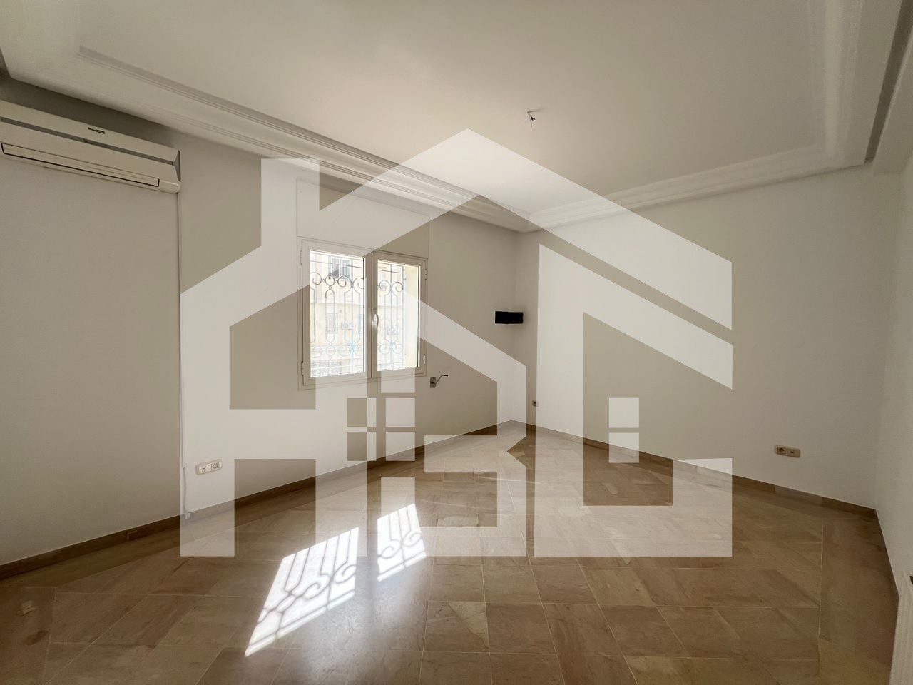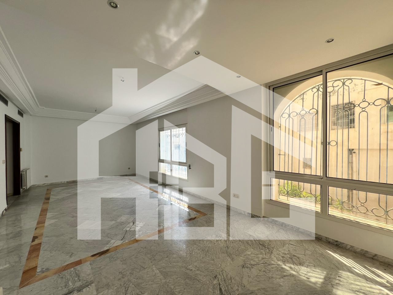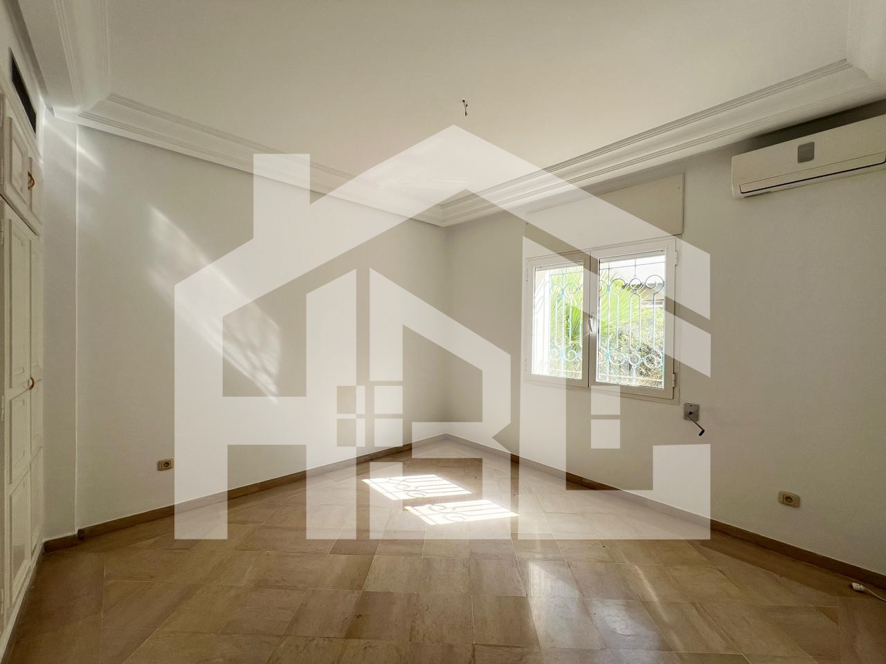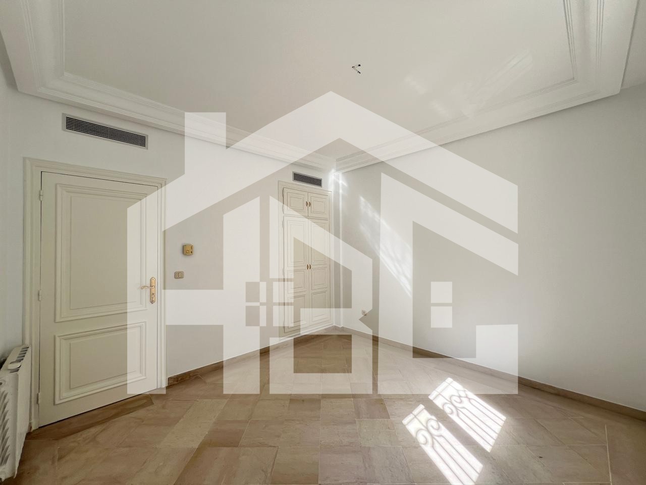 Dès l’entrée, un hall accueillant dessert un spacieux salon revêtu en marbre blanc, baigné de lumière naturelle grâce à ses larges ouvertures, offrant un cadre de vie à la fois chaleureux et raffiné.