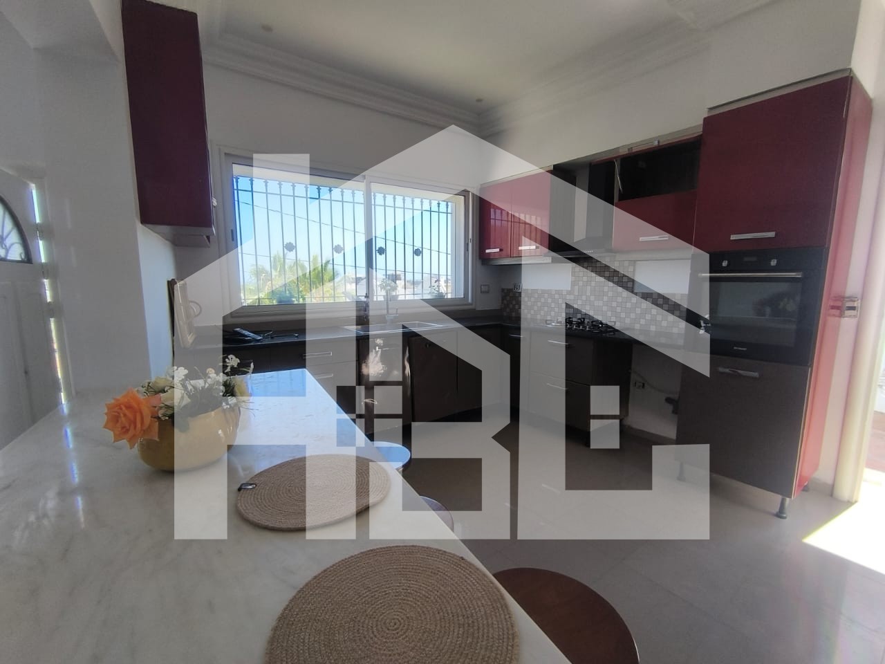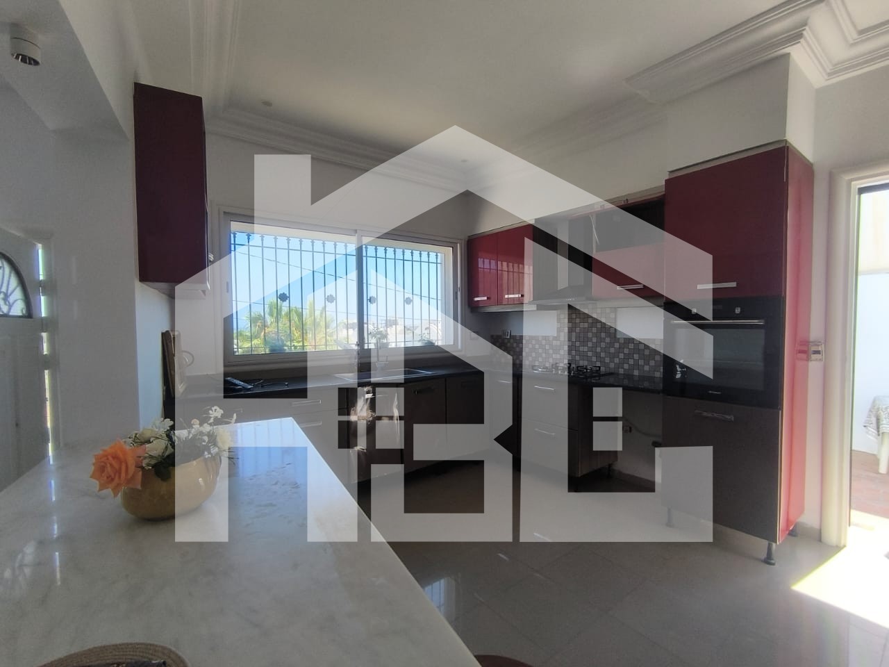 L’entrée donne sur un salon lumineux baignée de lumière naturelle grâce à sa baie vitrée qui donne sur un espace extérieur arboré, fleuri et bien entretenu, parfait pour profiter du soleil, organiser des barbecues ou simplement se relaxer. Un vrai coin de paradis à quelques pas de la mer.