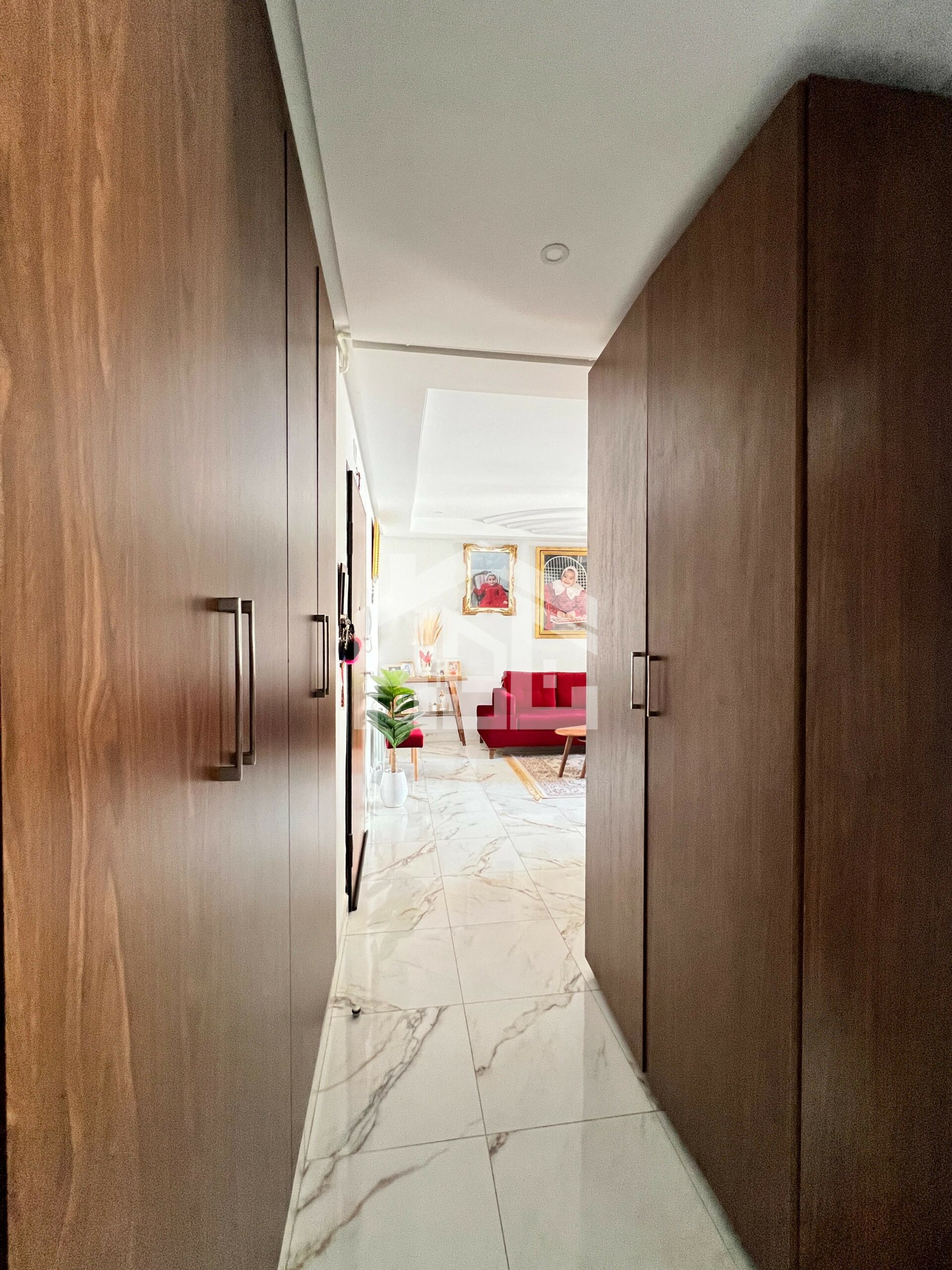 Plusieurs espaces de rangement tout au long du couloir pour plus de fonctionnalité.
