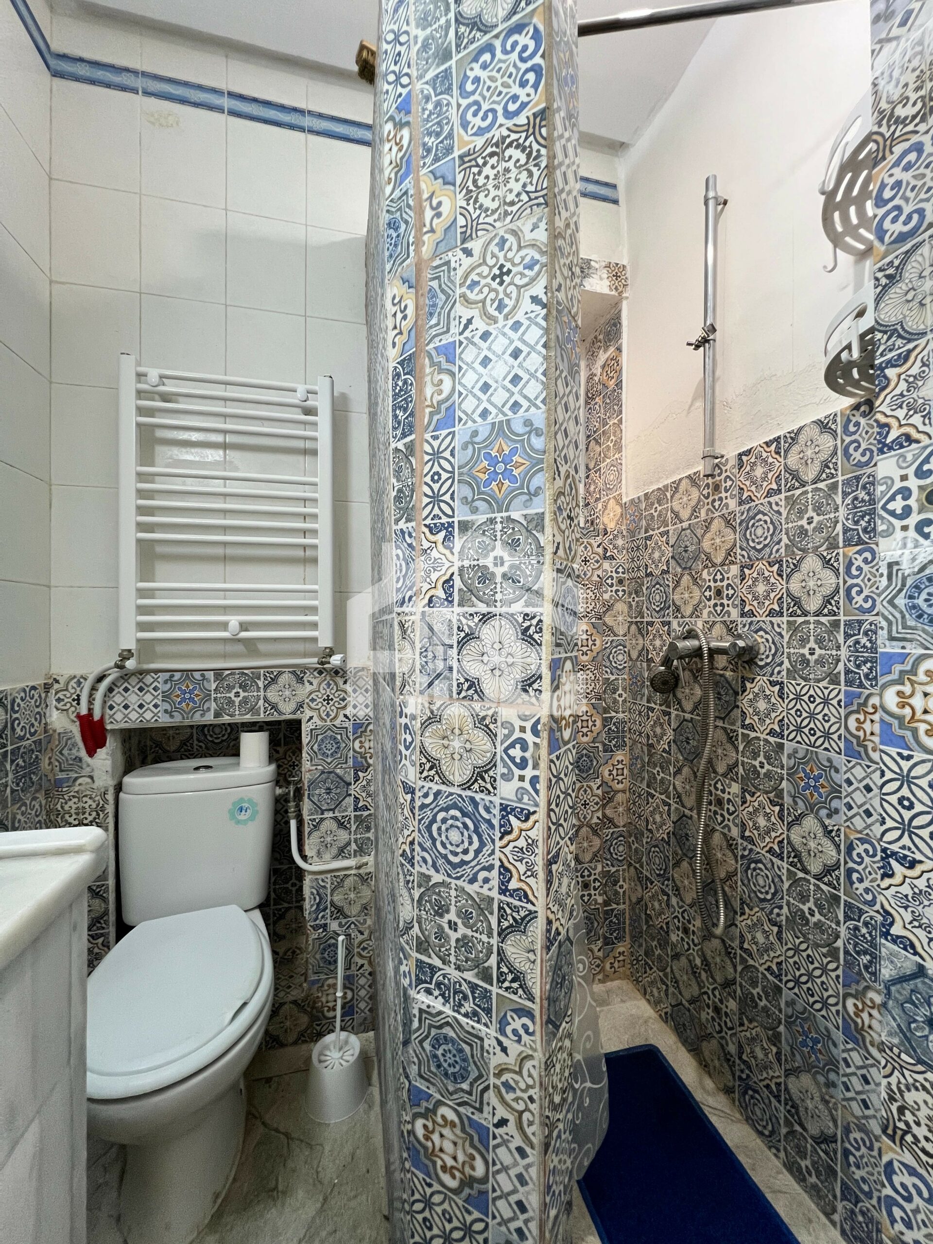 L’entrée donne sur un petit couloir qui vous mène à gauche vers un salon lumineux grâce à sa baie vitrée qui donne sur un balcon.