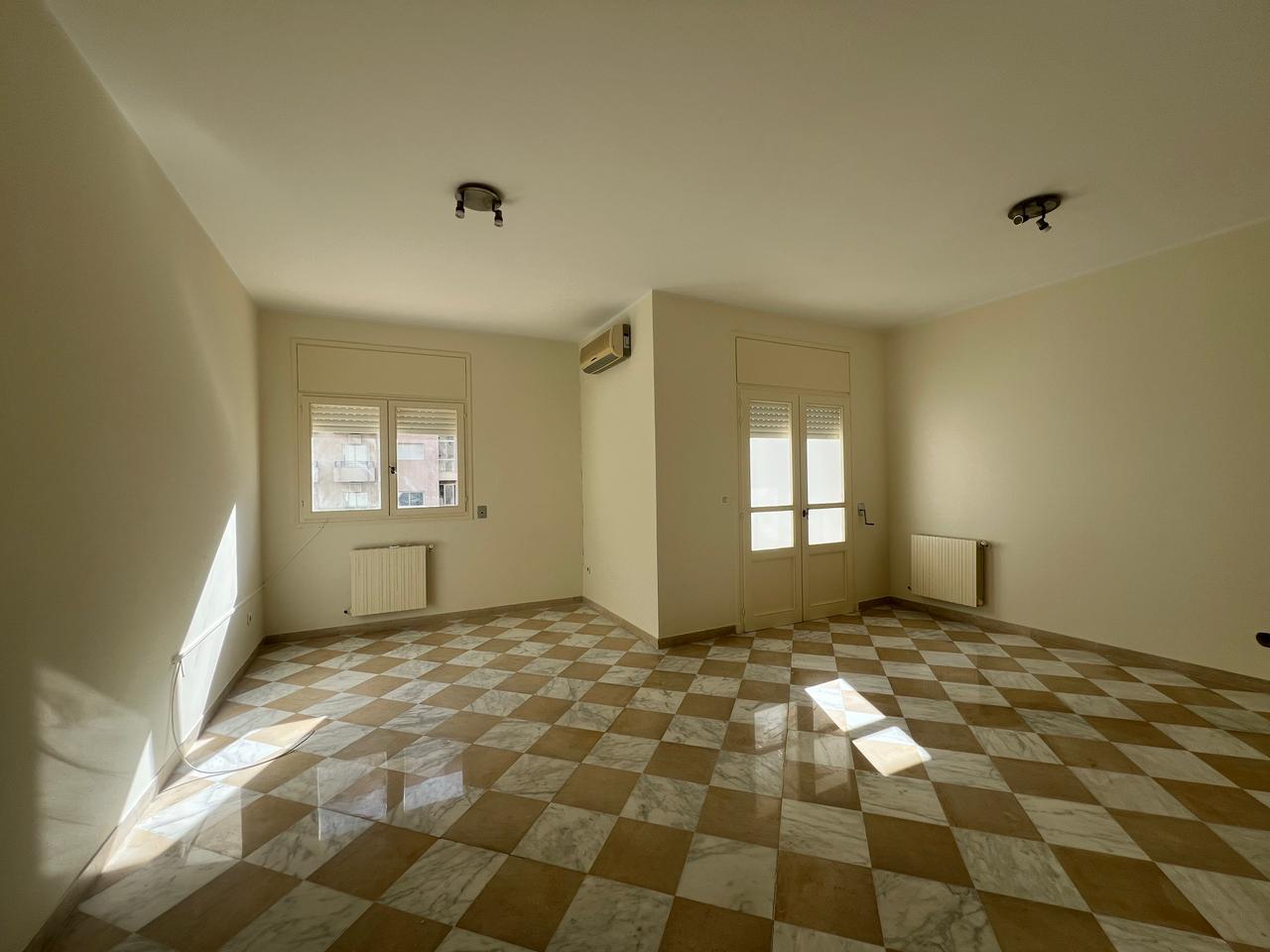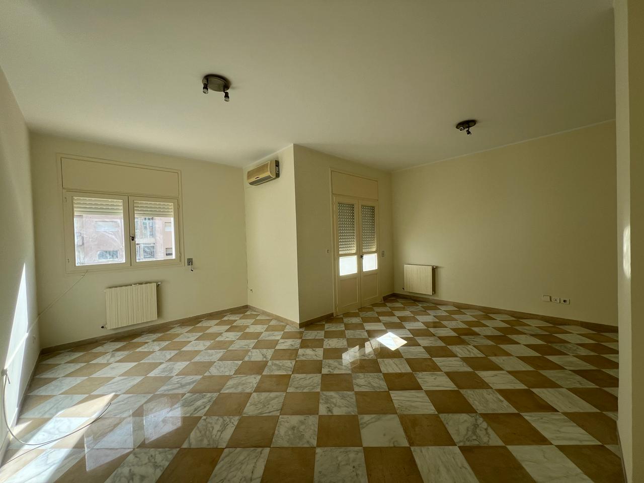 L’entrée donne sur un salon spacieux baigné de lumière naturelle grâce à sa baie vitrée qui donne sur un balcon offrant une vue dégagée sur le quartier.