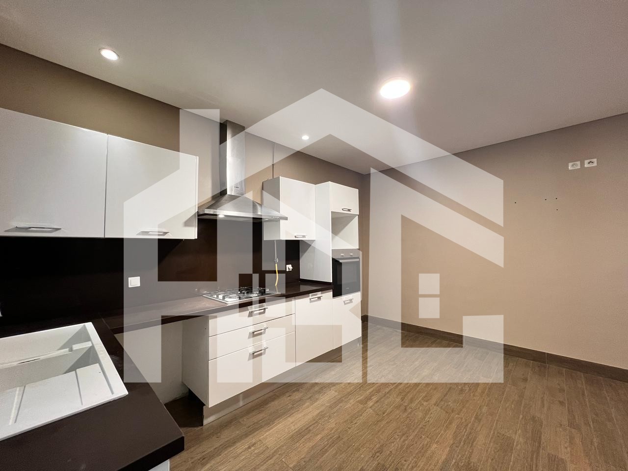 La cuisine, entièrement aménagée et équipée par une hotte aspirante, une plaque de cuisson et un four électrique annexée par un séchoir pour plus de fonctionnalité, se distingue par son design fonctionnel et ses finitions soignées.